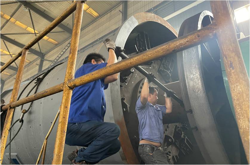 Dia.4.95×15m陽極爐筒體已初步完成組對工作,后續進入自動焊接工序。