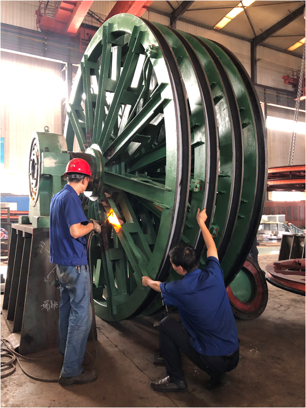 2020年8月22日,重型成套設備廠在“出口磨機大會戰”收尾之時,又傳來好消息,成套廠滾齒機班5臺機床同時運轉,YM51250插齒機在加工2JK-3.5米雙筒提升機調繩離合器的內齒圈;Y31125E滾齒機在加工B245.17-2外齒軸套;Y31800C 8米滾齒機在精滾齒M=22的大型軸承圈;YK3113000 13米數控滾齒機在加工外貿M=33.998的出口齒圈;8米開齒機在加工直徑Φ7920、M=40的回轉窯大齒圈。這是近幾年來滾齒機開動頻次最高的一次,車間內機聲隆隆,井然有序,一派繁忙景象。