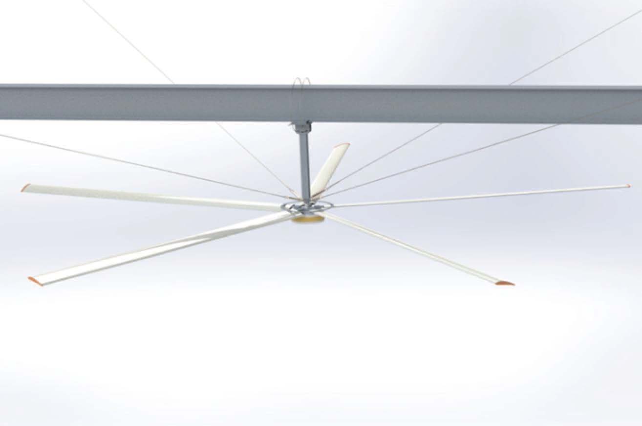 機翼型扇葉設計,強大的空氣攪動能力,從而形成不只局限于風扇下方的超大面積覆蓋。一臺風扇覆蓋面積可達2000㎡。