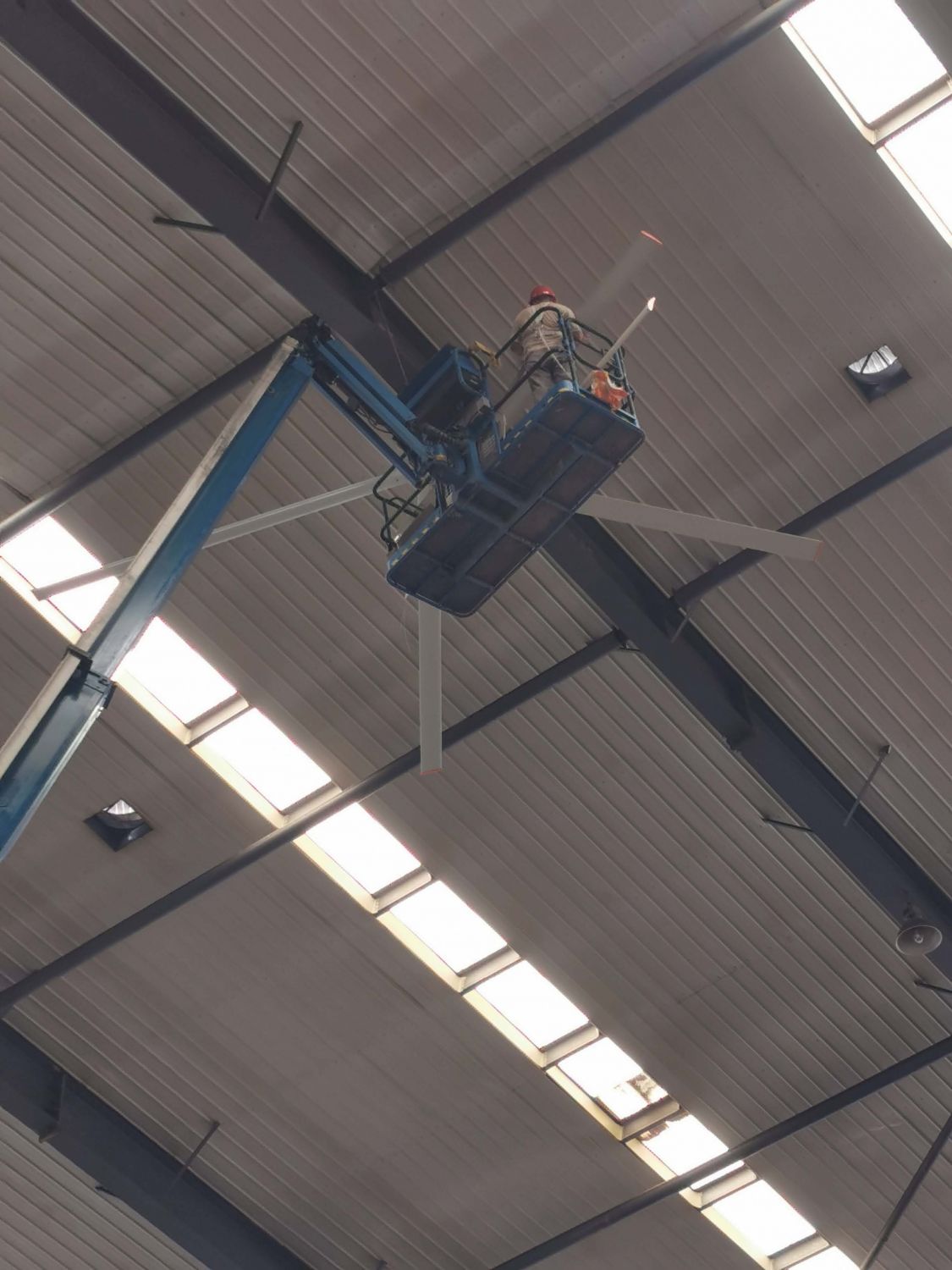 生產車間:生產車間員工勞動強度大、流動性高,若使用小型風扇一位一機,效果差不實用,且在高大空間根本起不到空氣循環的作用,若想使用空調達到廠房全覆蓋,成本造價將會更高。